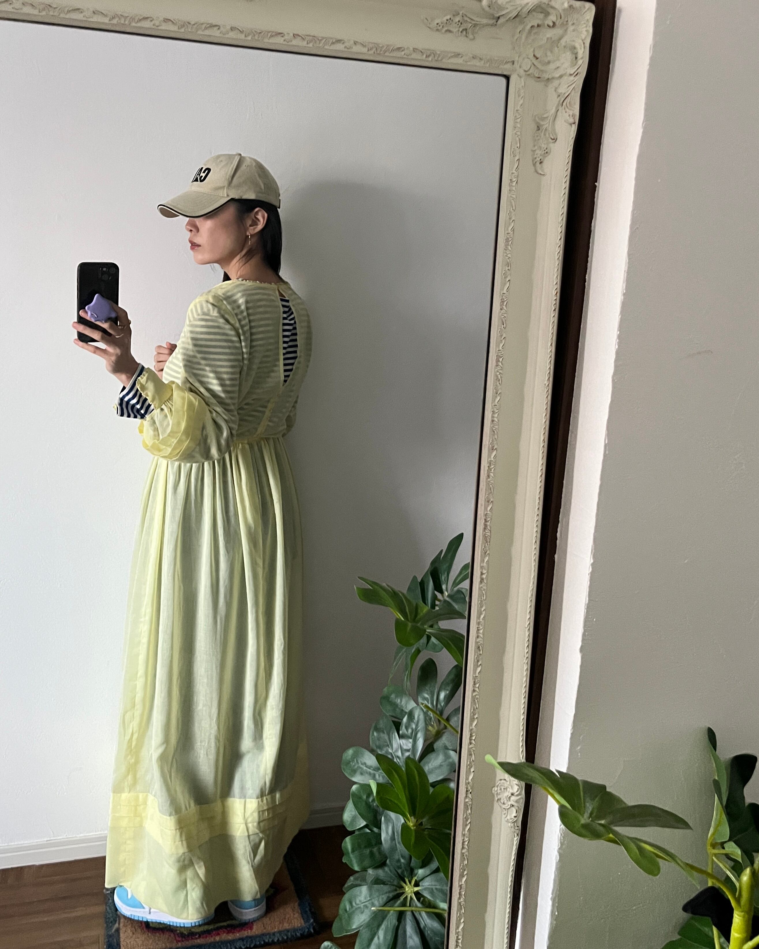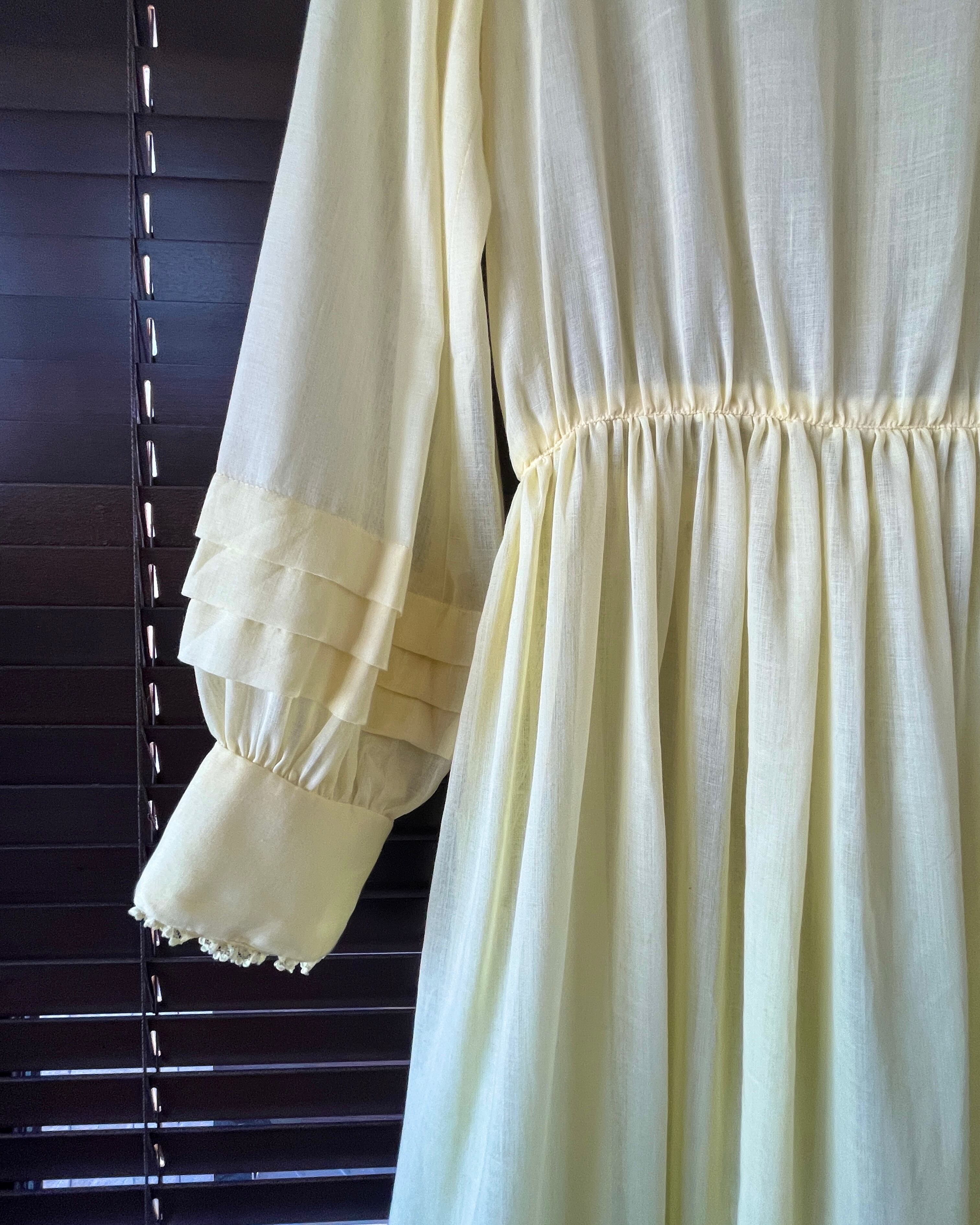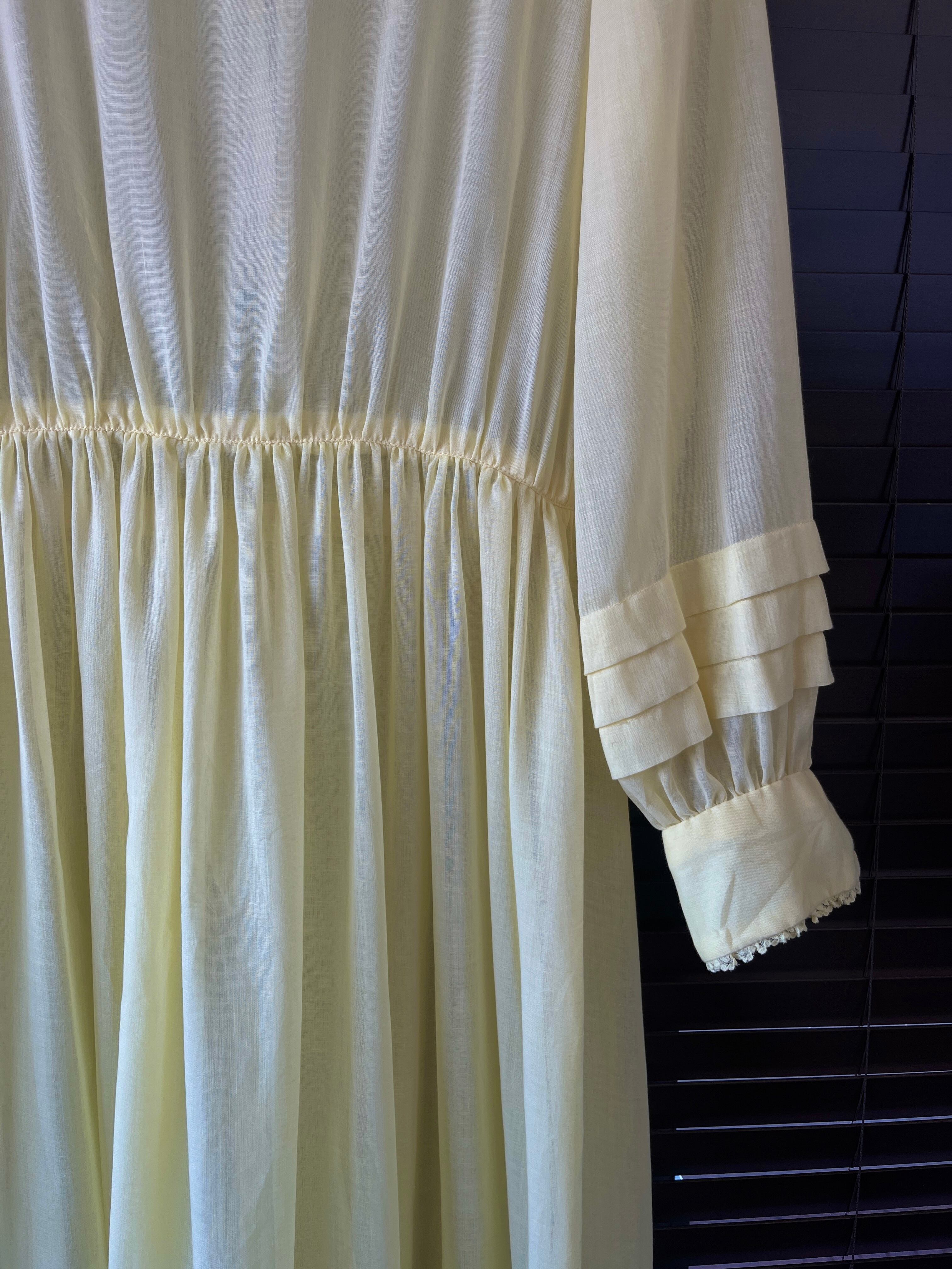 透け感のあるレモンイエローのワンピース。
