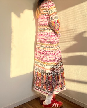 Aラインのシルエットがとても綺麗な総柄のワンピース。