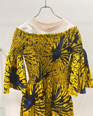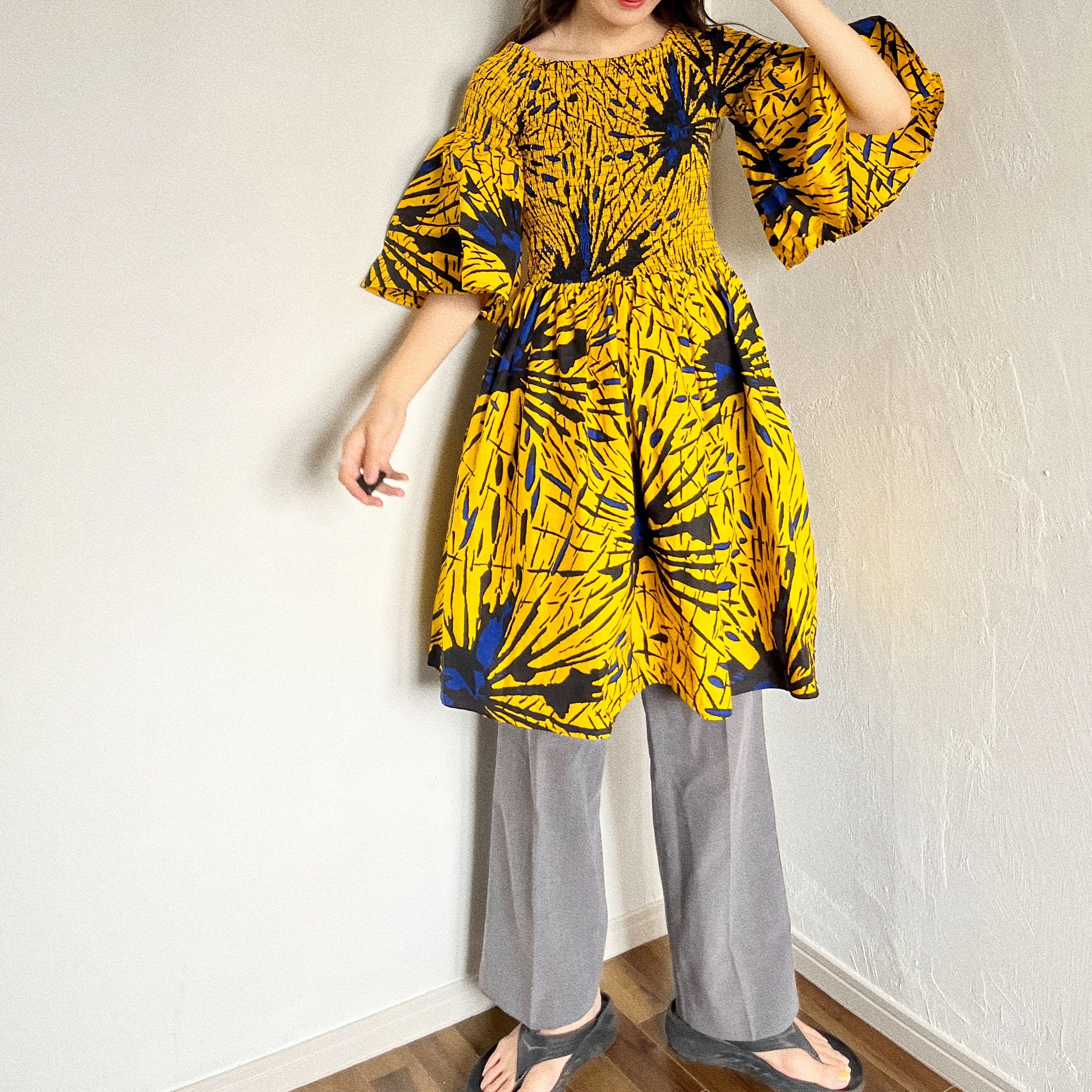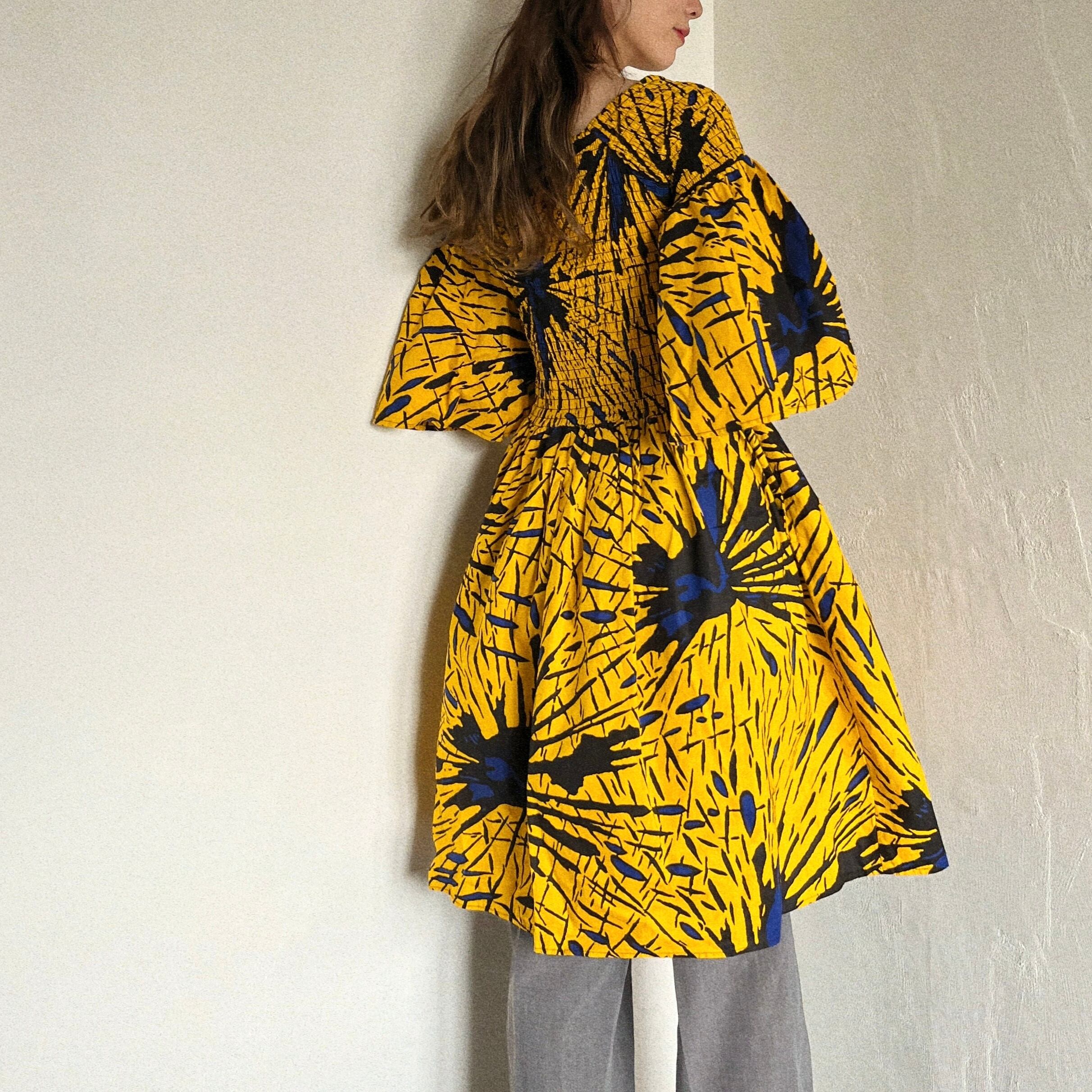 ふわっと広がる裾とスカートのシルエットが美しいアフリカンバティックのワンピース。