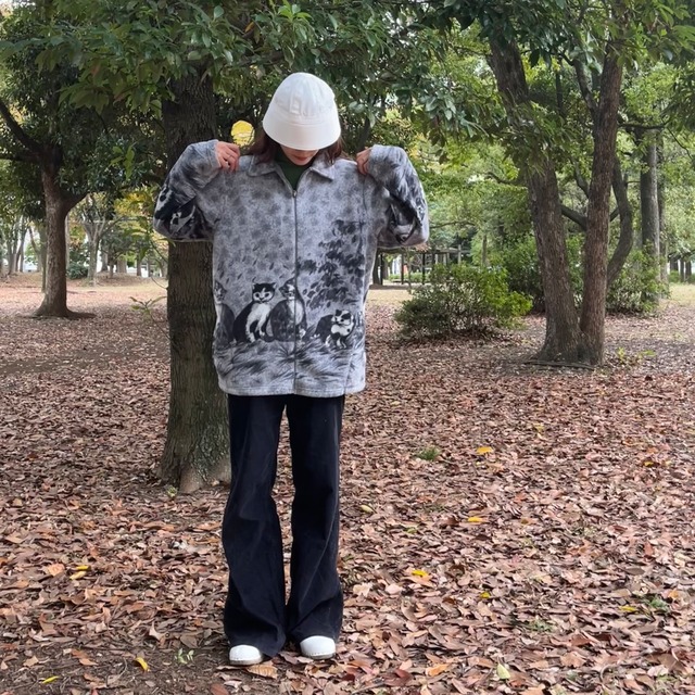 前身頃、後身頃、腕も猫、猫なフリースジャケット。