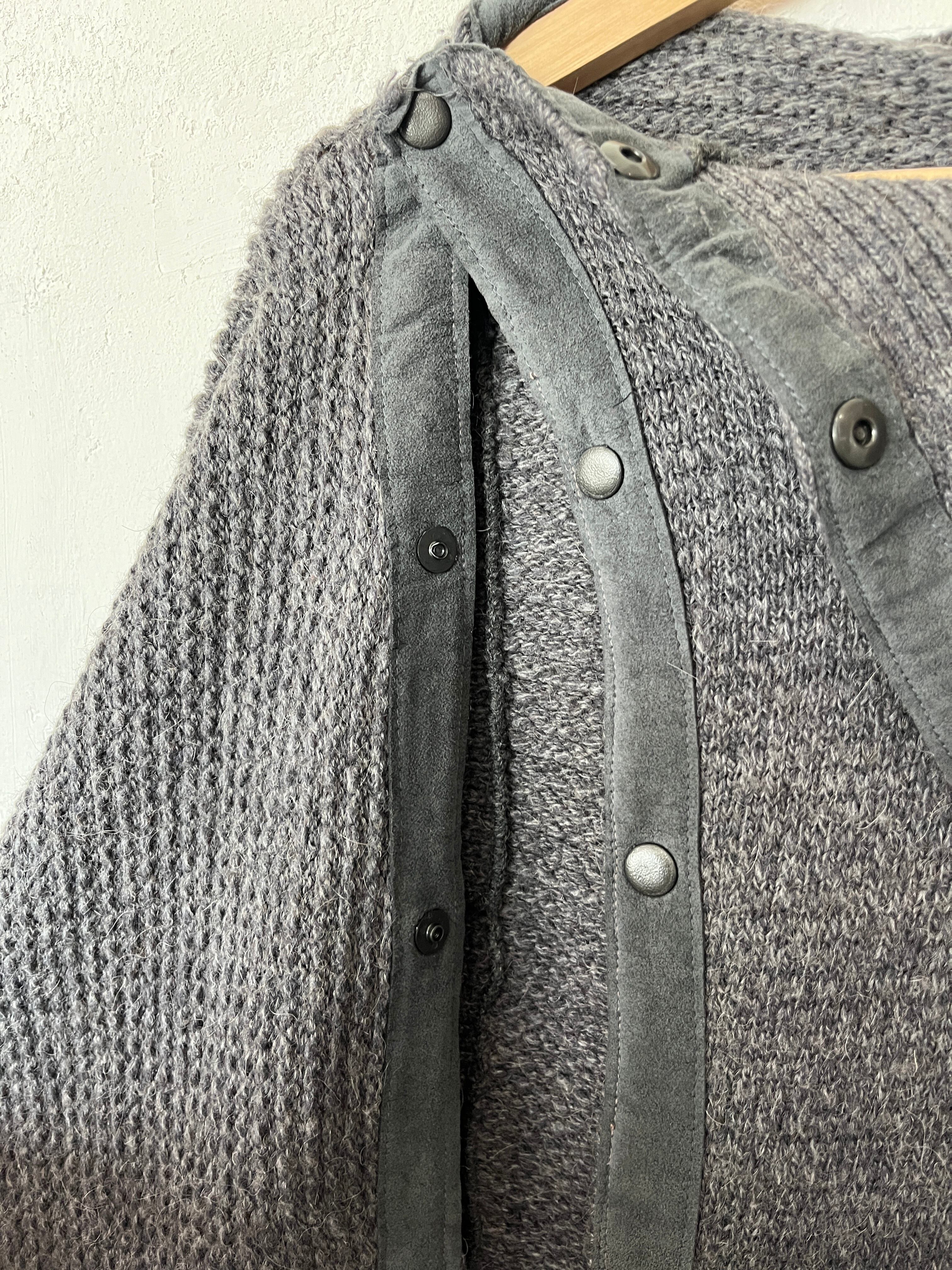 グレーのボディにグレーのスエードのパイピング、ボタンもブラックに近いグレー