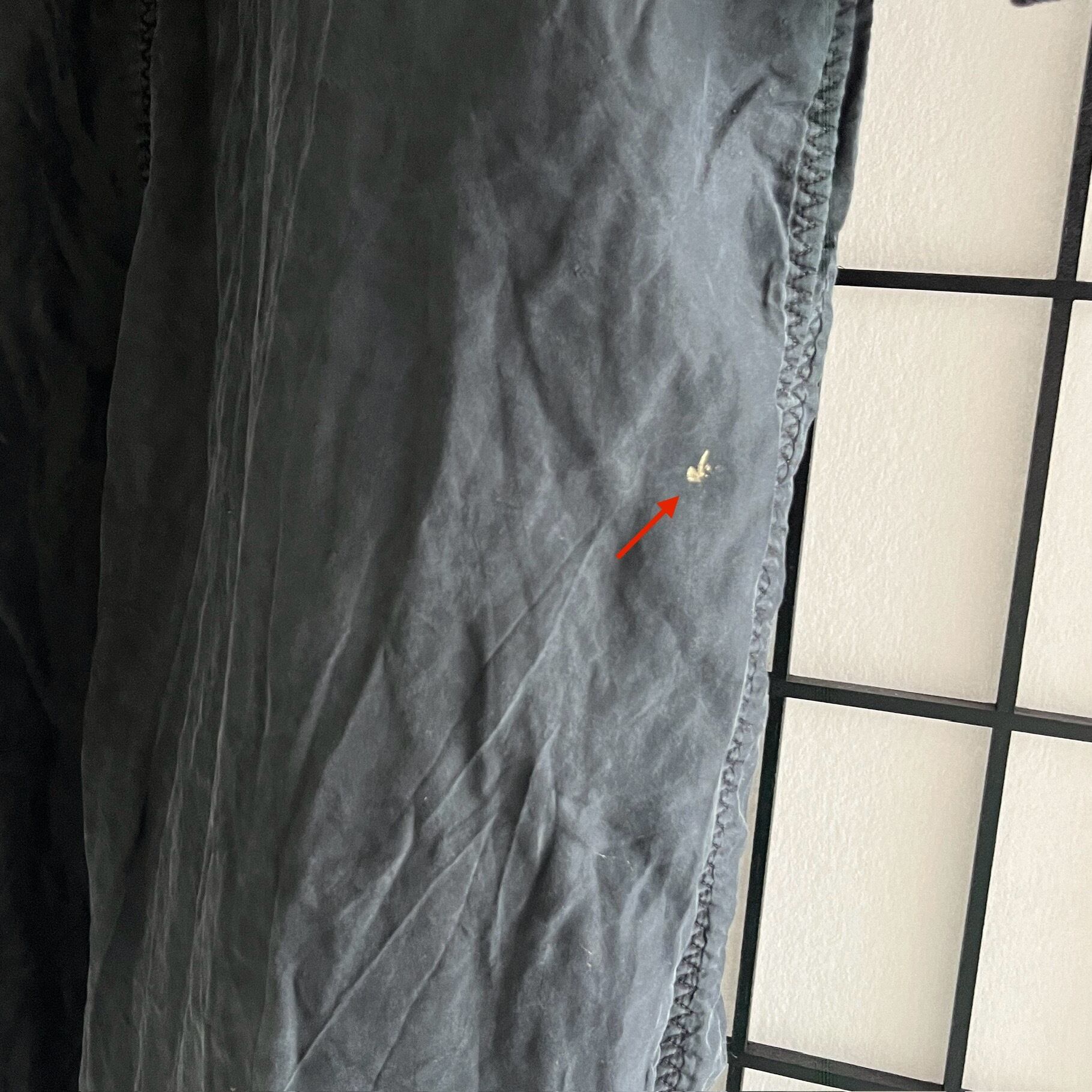 前身頃(左もも辺り)にゴールドのペンキかマニキュアのようなシミがあります。
