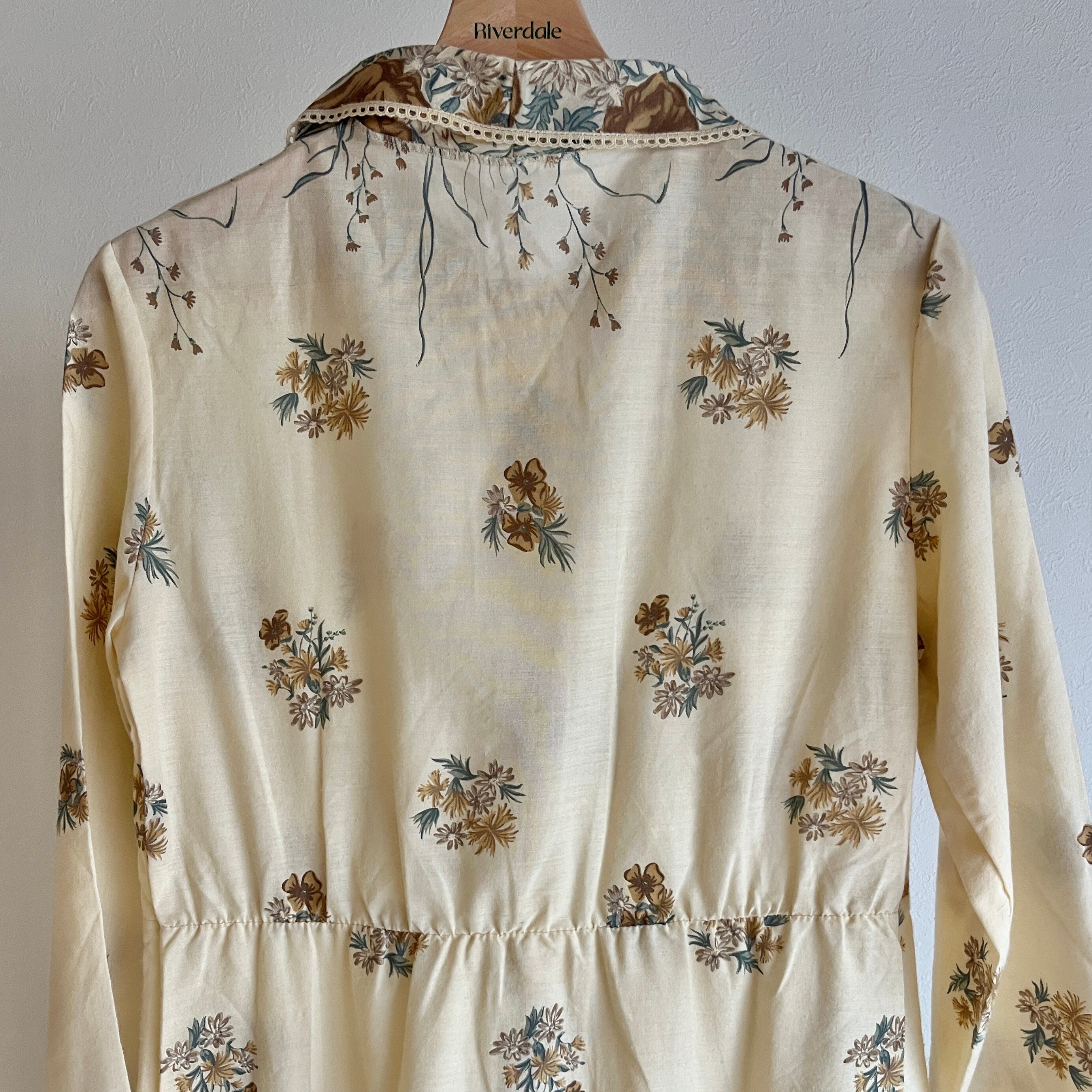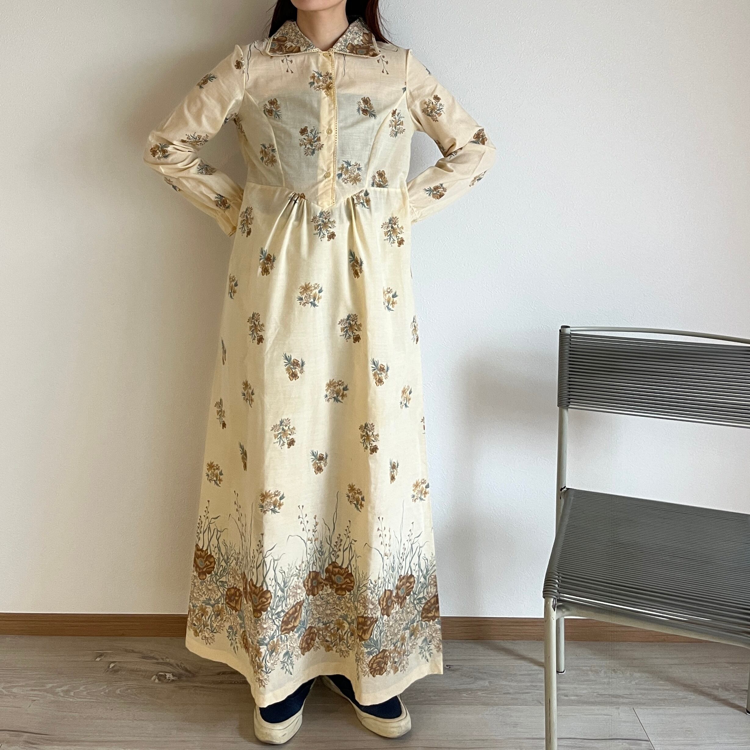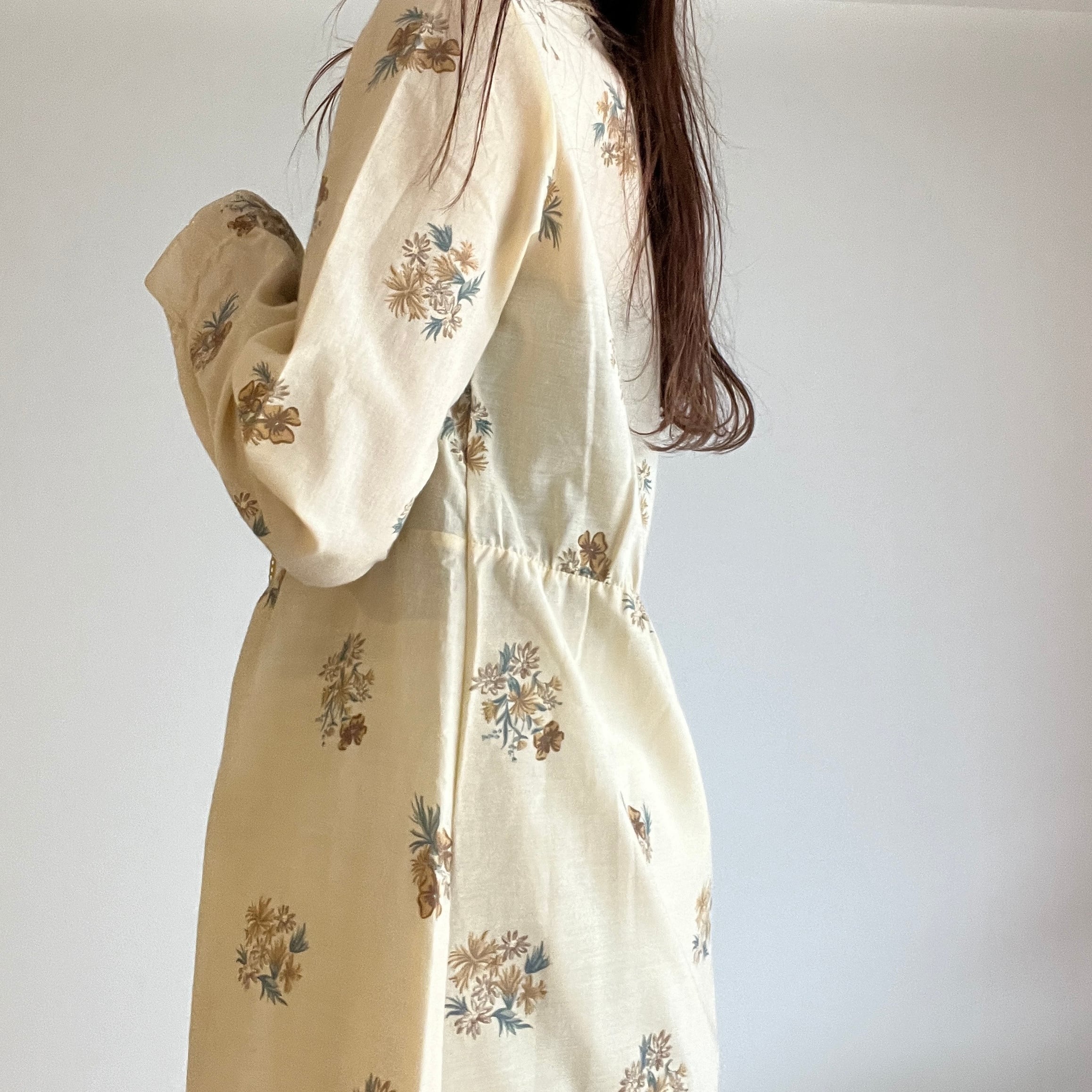 やわらかいレモンイエローのような、クリーム色のようなロングワンピース