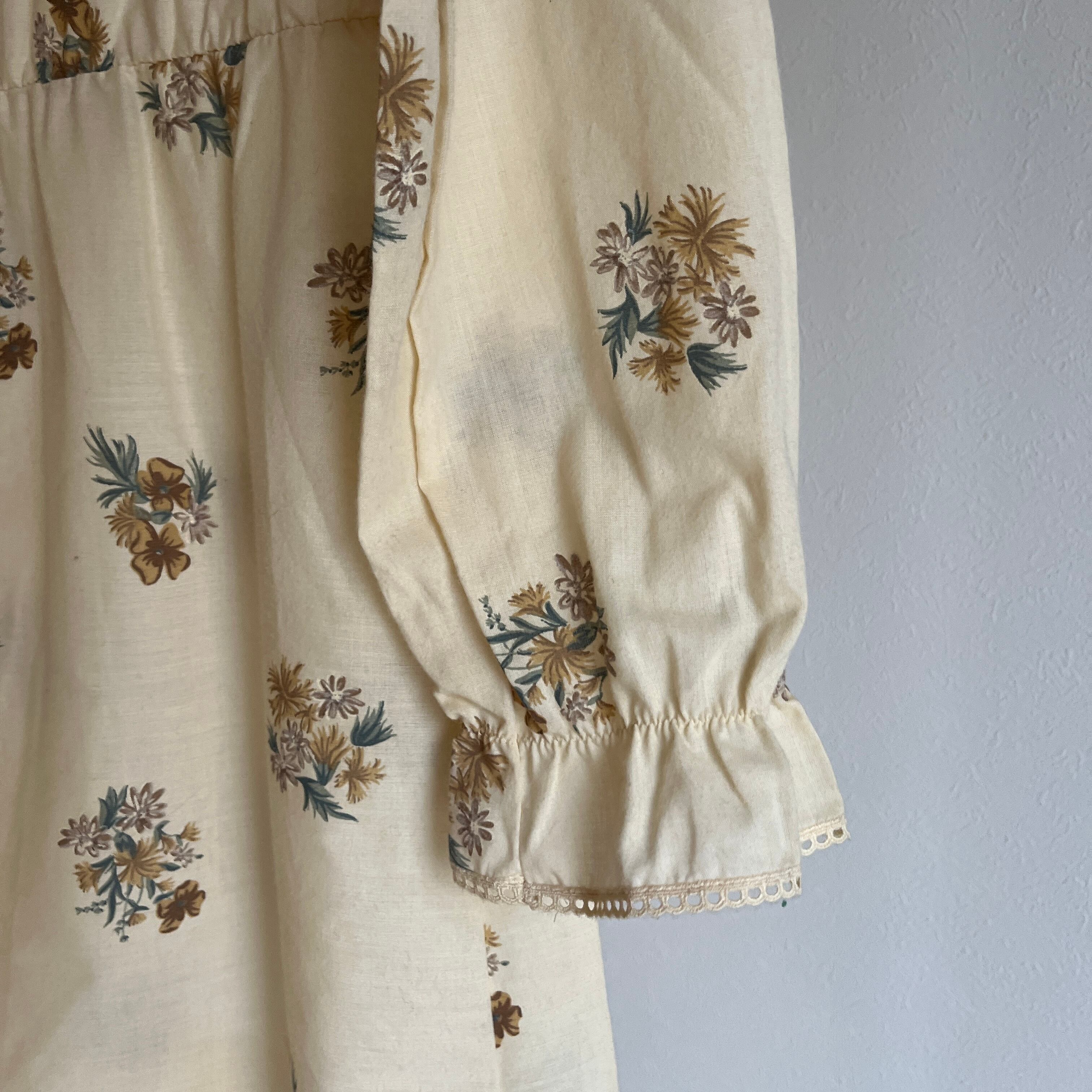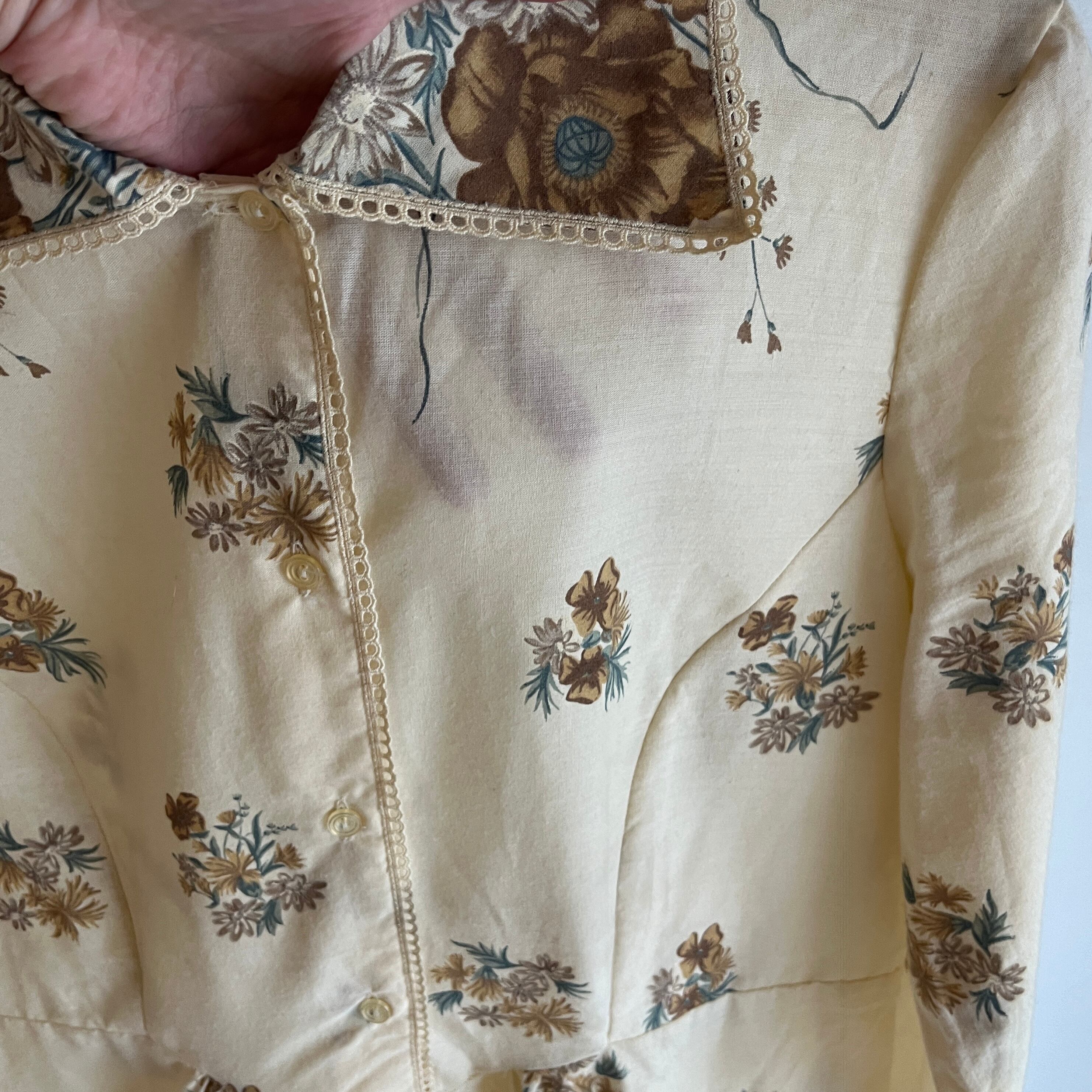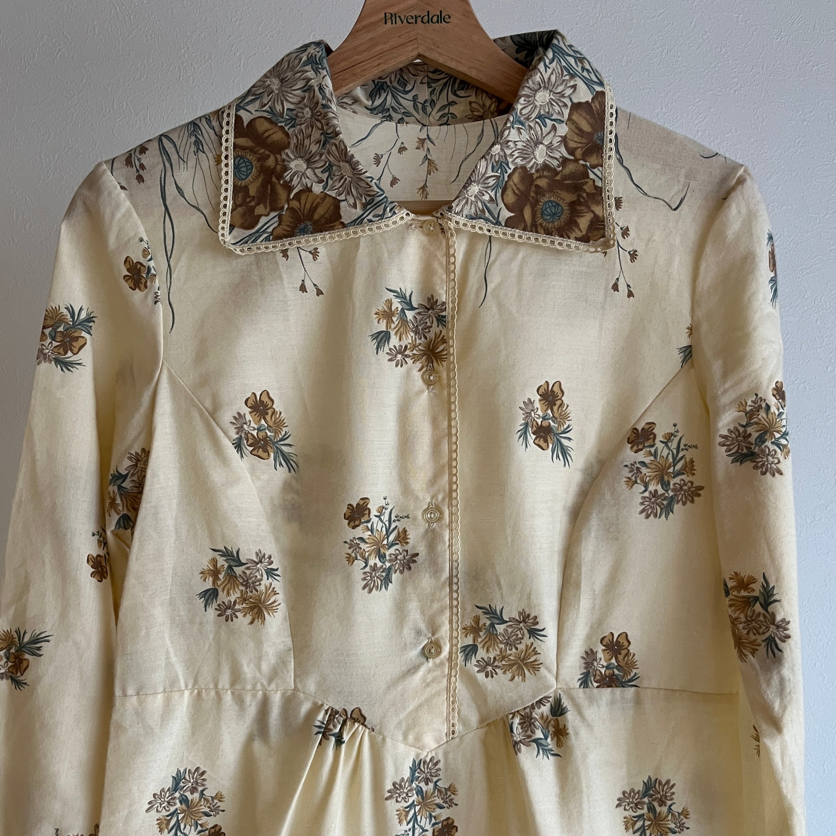 やわらかいレモンイエローのような、クリーム色のようなロングワンピース