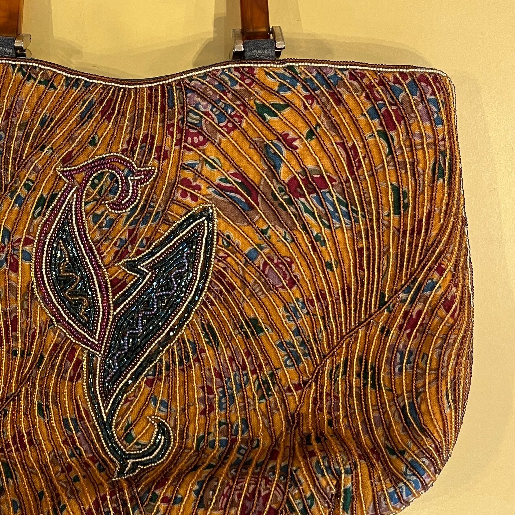 葉っぱのような魚のようなビーズ刺繍が施されています。