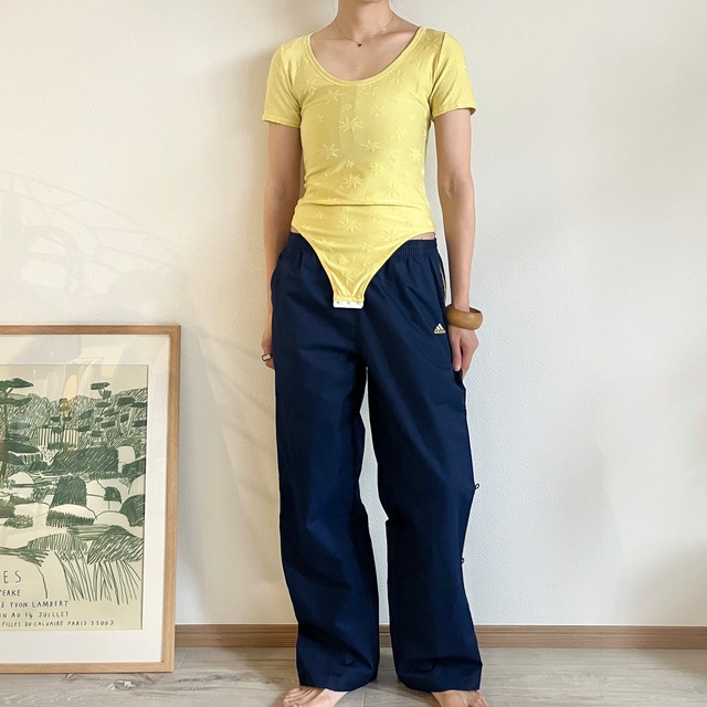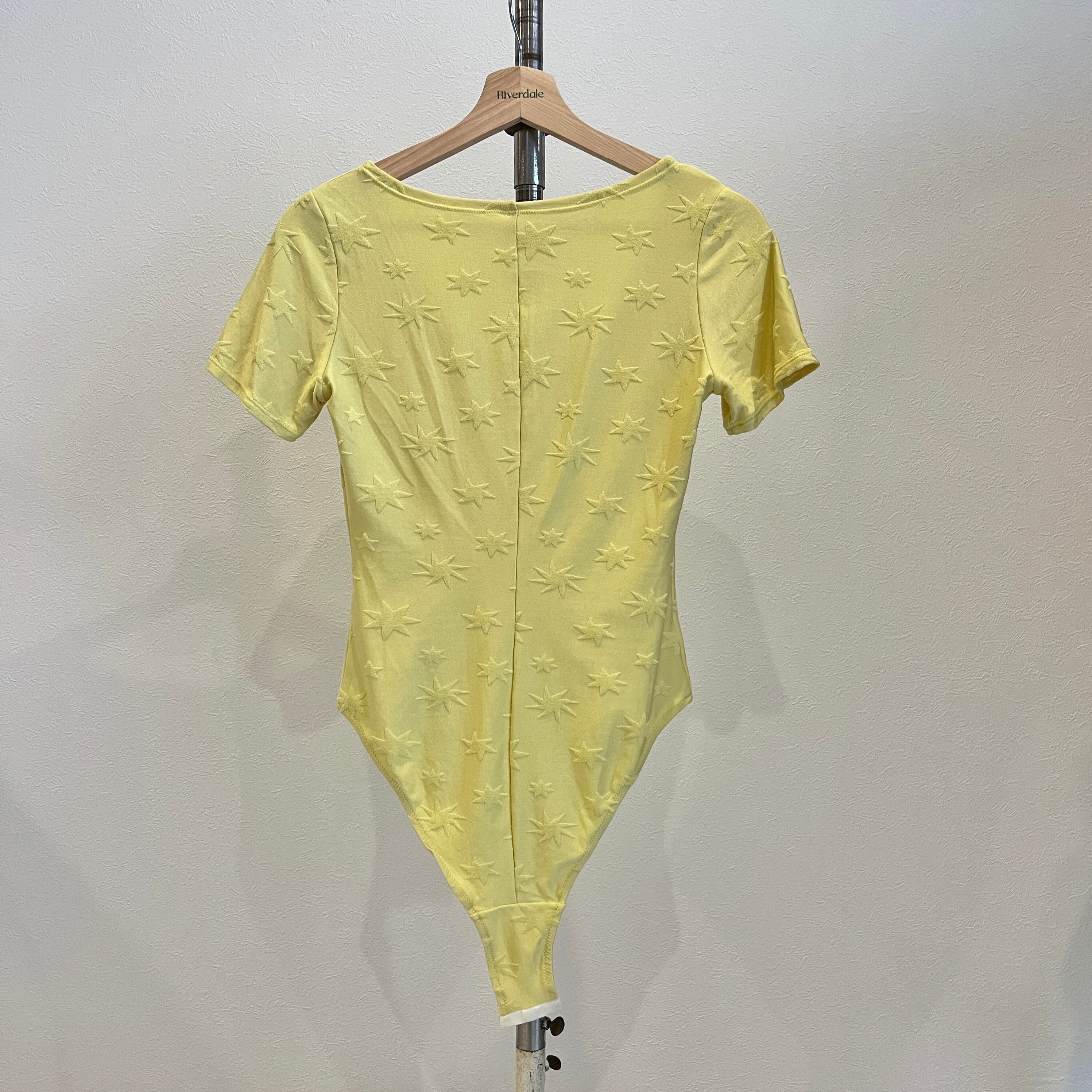 レモンイエローのボディスーツ。