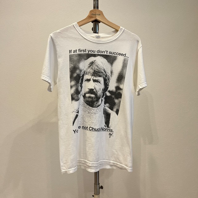 アメリカの俳優、チャックノリスがどんとプリントされたTシャツ。