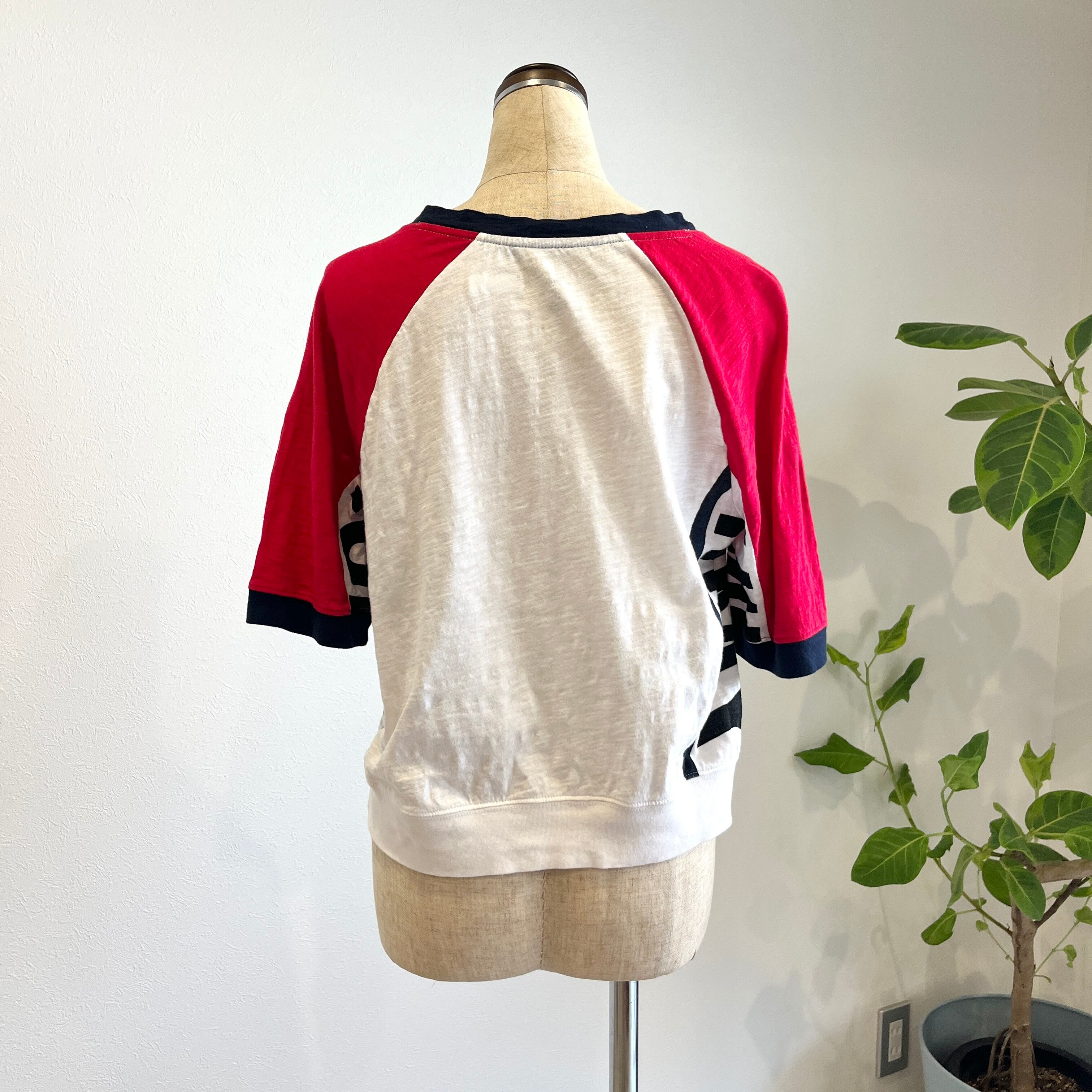一見シンプルなラグランTデスガ、サイドに大きくロゴが入っています。