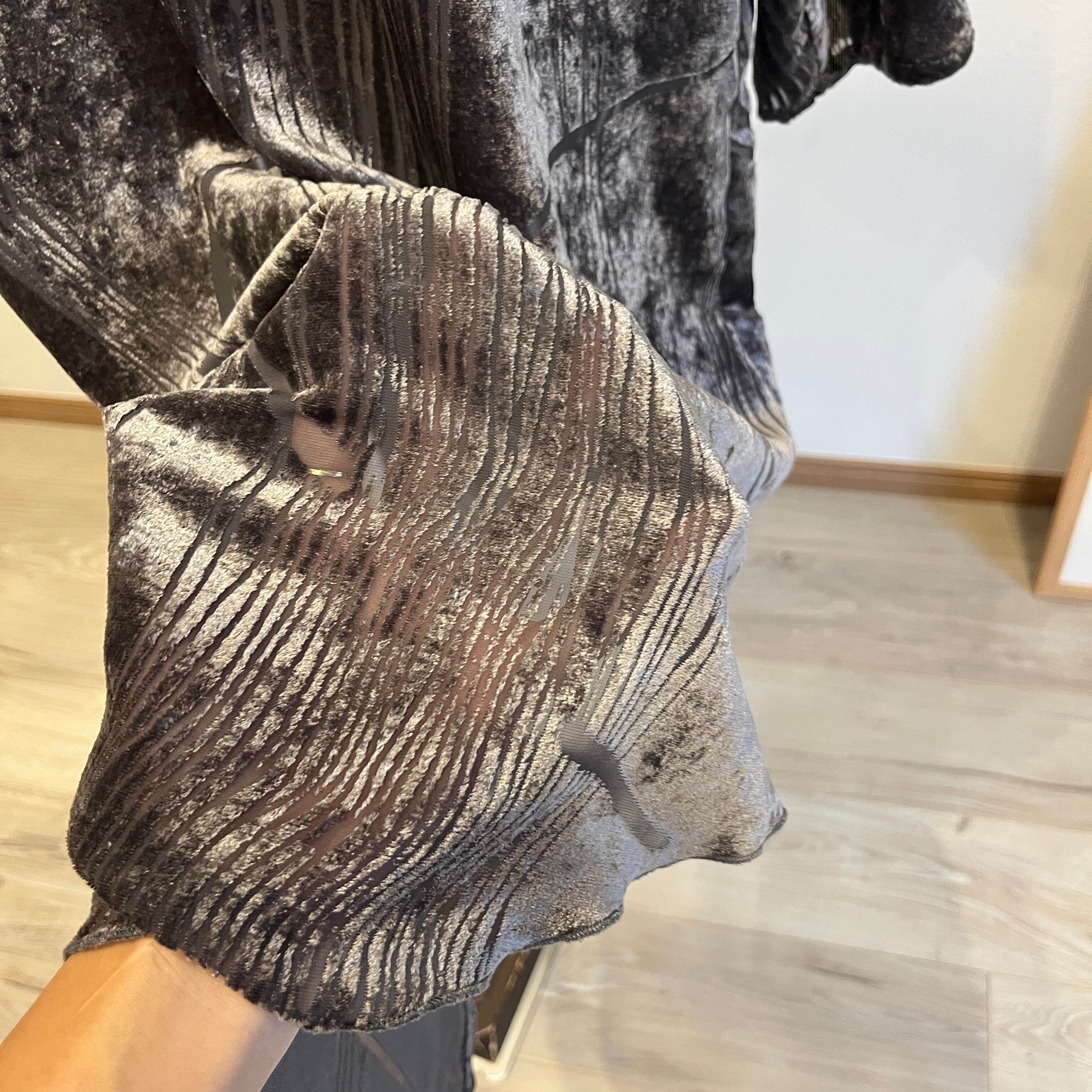 裾や袖など光が入るとしっかりシアー感が分かると思います。