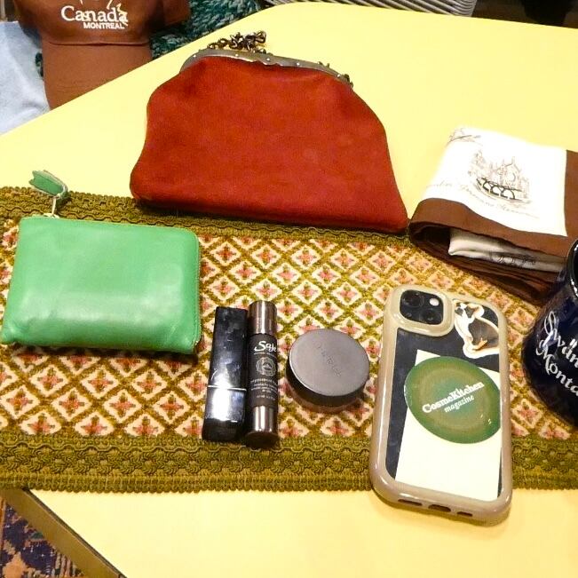 容量はハンカチ、お財布、リップ、チーク、アロマオイルとiPhone13を入れてちょうど!という感じでした。